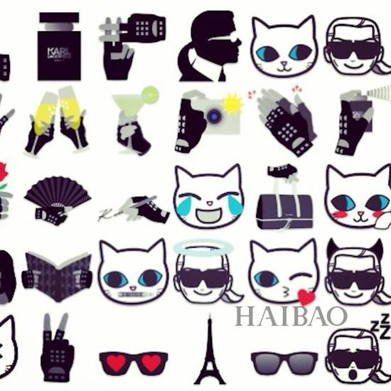 说到Chanel就不得不提老佛爷Karl Lagerfeld,像神一样的 Karl Lagerfeld也推出过自家 emojis,图案包括他自己的图像,他的经典手势,(当然那一对皮手套不能少) 他的香水,还有一直很受大家欢迎,他的爱猫 Choupette。