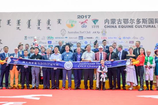 导语:中国大陆最国际化的纯血速度赛马嘉年华——2017 CECF内蒙古鄂尔多斯国际驭马文化节于8月20日在伊金霍洛旗赛马场圆满落幕。本次活动由内蒙古鄂尔多斯市体育局及伊金霍洛旗人民政府主办、伊泰大漠马业承办。本届CECF国际驭马文化节为期两天,19日的国际驭马文化节论坛,暨高盛经济论坛、CECF“魅力之夜”欢迎派对以及20日的马主庄园特色小镇暨鄂尔多斯马文化展览馆揭幕,和压轴好戏——CECF赛事日四场精彩纯血速度赛马赛事。