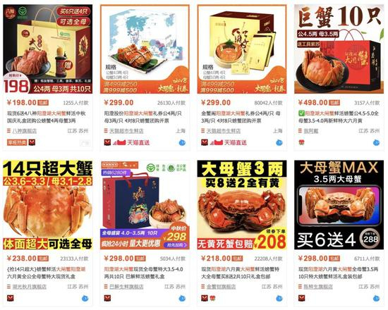 淘宝上已开始售卖大闸蟹。不同于一般的蟹,阳澄湖大闸蟹每年只有“开湖”后才能在市场上买到。