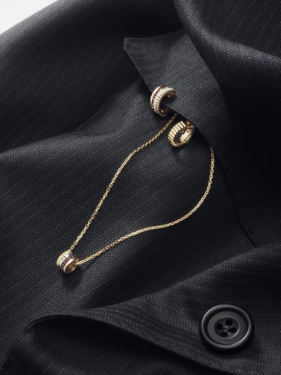 毋庸置疑,此款吊坠可混搭任意Quatre系列单品打造百变风格。例如同时叠戴多枚耳夹与吊坠项链,搭配简约款超大男士外套,尽显洒脱个性;亦可搭配经典款西装外套、长裙和低筒靴,为日常装扮注入生气。