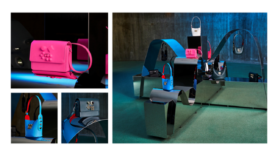 舞台后方长廊通向另外两个空间为您呈现2022秋冬系列灵感艺术主题:Greekaba胶囊系列与Carasky包袋系列。空间中为致敬建筑师的创意世界,Greekaba胶囊系列作品于混凝土展示台上呈现。源于Christian对旅行的无尽热爱,Greekaba此次推出两款全新设计:灵感源于大地与海洋,每款限量作品都描绘了Christian的历险之旅——穿行基克拉泽斯群岛与雅典的旅程。Christian Louboutin先生的朋友、希腊艺术家Konstantin Kakanias创作的虚构人物Tependris小姐邀您与品牌设计师一同探索他趣味独特的艺术作品。两位艺术家以此极为特别的合作向地中海的丰富文化遗产和手工艺致敬。