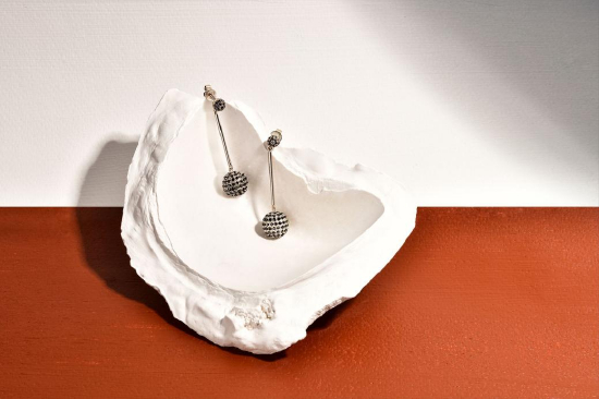 EMPHASIS艾斐诗将多种贵金属按精准比例巧妙融合,锻造出品牌独创的丝缎合金材质,以简约潮酷的创意设计,打造摩登时尚的EMPHASIS艾斐诗Manon‘融’系列珠宝作品。不规则手工拉丝纹理呈现复古浅香槟色泽,搭配镶嵌酷感黑钻的独特圆球造型,或点缀质感黑色涂层,释放多元复合美感,轻松成就中秋造型视觉焦点,诠释大胆率性的时髦主张。