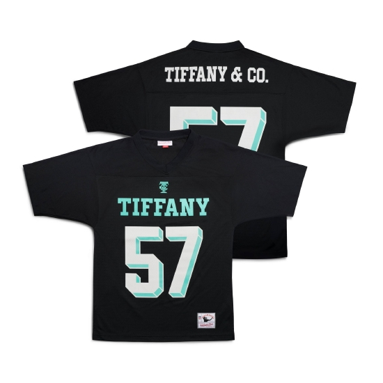 此外,为致敬品牌为标志性体育赛事手工制作奖杯的悠久历史,同时庆贺第57届超级碗®的举办,蒂芙尼还与知名复古运动品牌Mitchell & Ness携手推出限量款橄榄球衣,并已于本月初在蒂芙尼美国官网进行发售。该限量款球衣采用数字“57”作为醒目装饰元素,不仅致敬位于纽约第57街的蒂芙尼第五大道旗舰店,亦巧妙呼应第57届超级碗®。标志性蒂芙尼蓝(Tiffany Blue®)与经典“T&CO”标识点缀其上,更于细节中彰显蒂芙尼独树一帜的美学理念。同时,球衣包装也采用了限量版蒂芙尼蓝色礼盒(Tiffany Blue Box®),印有蒂芙尼与Michell & Ness双品牌标识。