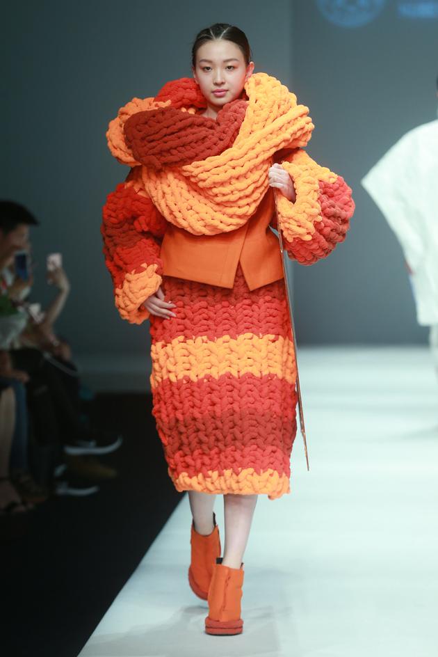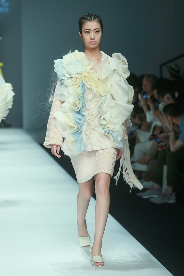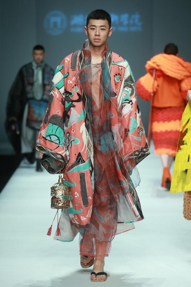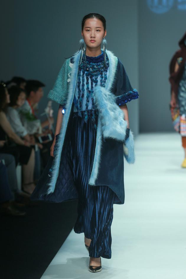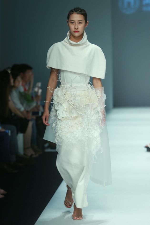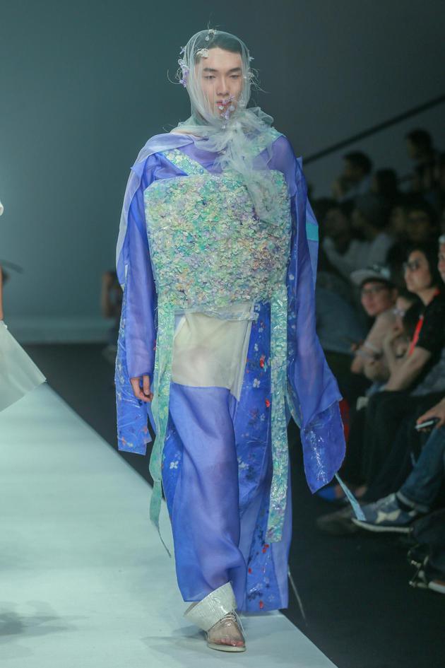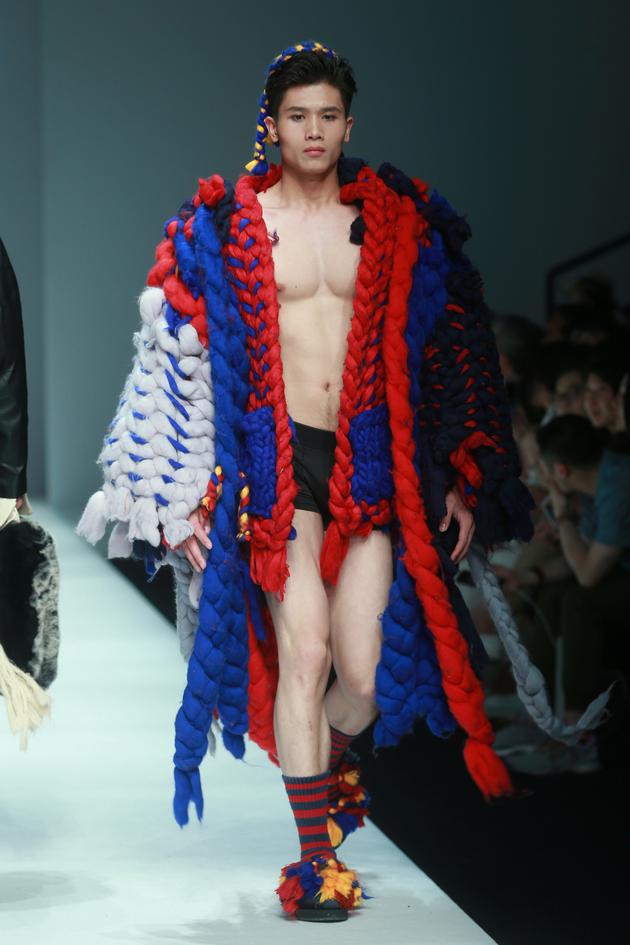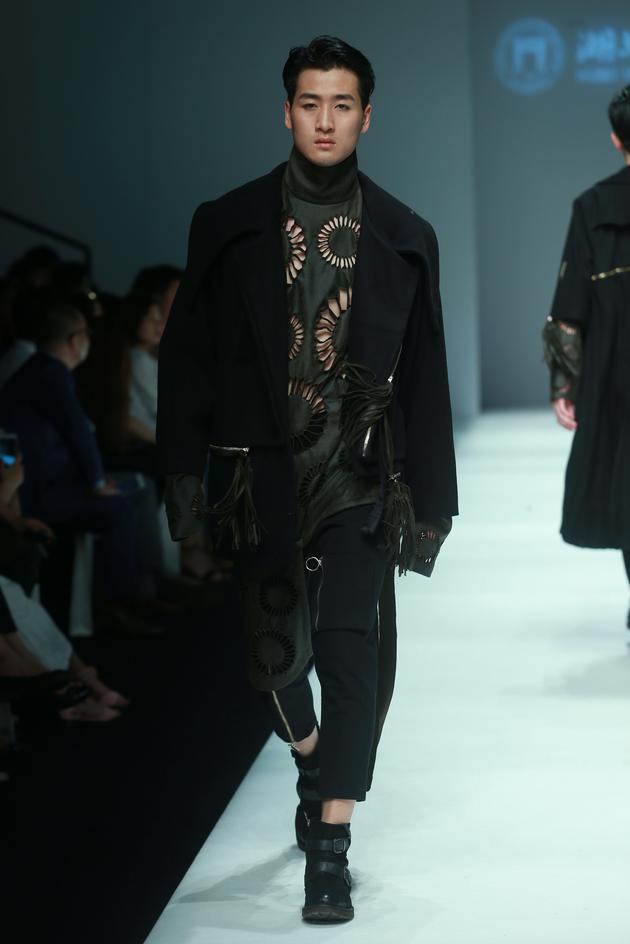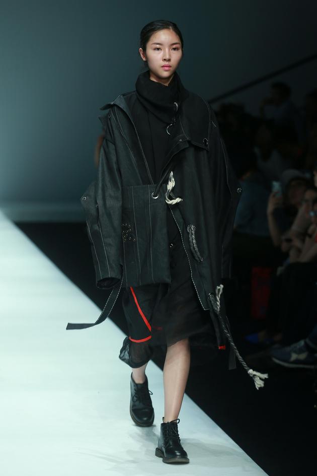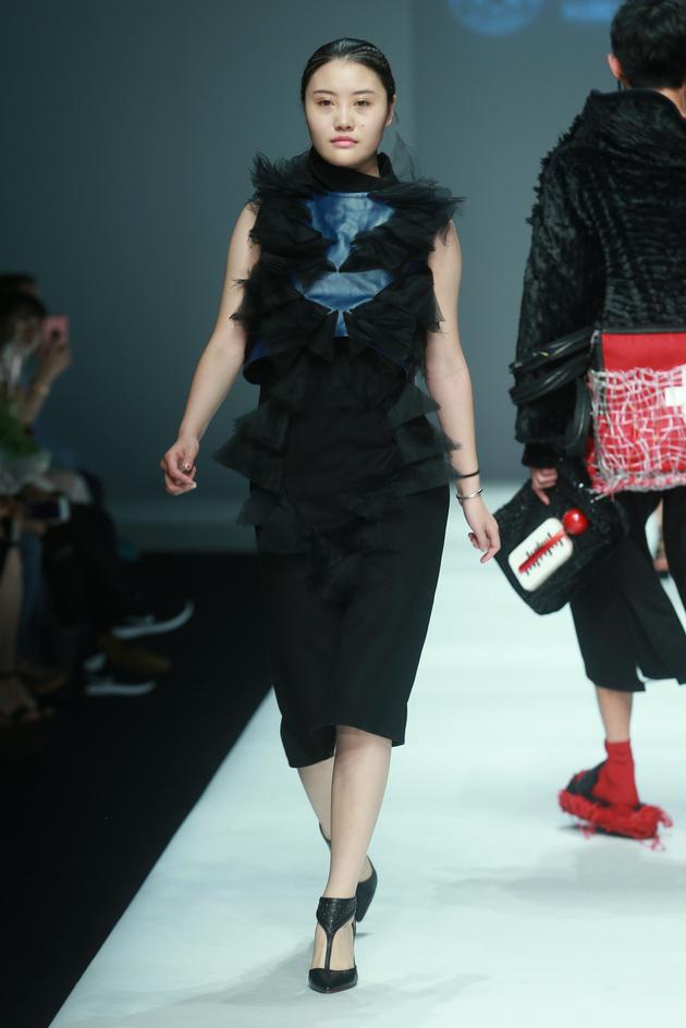 湖北美术学院服装艺术设计系在尚坤塬·2017中国国际大学生时装周中展出近80套优秀毕业设计作品,每件作品都凝聚着新锐设计师对生活点滴的瞬间。其中第24届“汉帛奖”优秀奖获得者秦朗同学毕业设计作品《鲸病》,灵感来源于对朋友的人性分析,用鲸鱼的生存方式比喻朋友在情感里私人空间的矛盾。这种感性与理性、柔软与坚硬的对比,让设计师结合大量的服装工艺,如钉珠、刺绣和绗缝等手法,表达个人情感与生活的互换。欧阳润东同学设计作品《漫游癖》反映了当下学生对生活的一种关注,发现年轻人白天在条条框框里生活谨言慎行,晚上却在没有束缚的另一个世界漫游,设计师通过服装简洁的造型与流畅的线条表达出服装自由的独立存在,无拘无束,此系列作品荣获第十九届“真皮标志杯”中国国际皮革裘皮服装设计大赛优秀奖。“九牧王杯”第二十二届中国时装新人奖入围作品《the Nightingale and the Rose》,灵感来源于王尔德的童话故事,设计师姜盈同学运用厚重的织物设计与服装的形态表达出王尔德对爱情观的理解。王婷婷同学设计的作品《瘟疫·免疫》,将露宿街头的流浪汉置于自己创作的视野,他们对美的另类追求,该系列运用叛逆颠覆的朋克元素和绣色彩鲜艳、热情奔放的山西民间刺绣及牛仔的结合运用,意欲表达自由不羁和随性的人生态度。汤凤翥同学的设计作品《DOCTOR&PATIENT 》 灵感来源于医患关系社会热点事件,以暗黑的风格,来讽刺医疗纠纷事件中的血腥和暴力,该作品入围第二十届“真皮标志杯”中国国际皮革裘皮服装设计大赛。张司晨同学毕业设计作品《我与里希特的对话》入围第五届“石狮杯”全国高校毕业生服装设计大赛,该系列将模糊的图像与情感相结合,体现出时尚艺术的不稳定性、迷惑性与情节性。