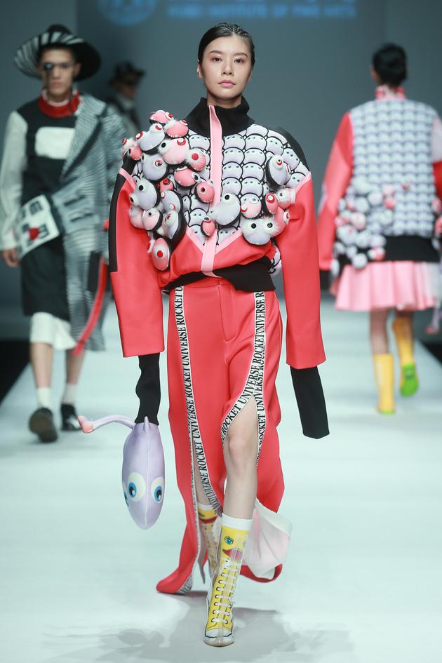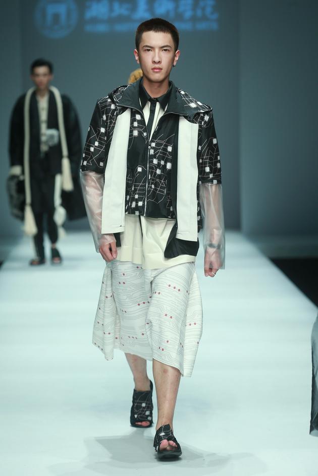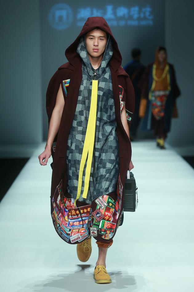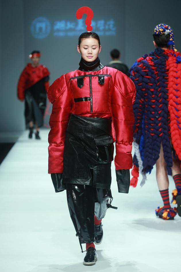 44张湖北美术学院服装艺术设计系,“红T·A7PLUS”2017届服装与服饰设计专业毕业设计作品专场发布亮相尚坤塬·2017中国国际大学生时装周,于2017年5月17日14:00在北京751D·PARK中央大厅隆重举行。这是湖北美术学院服装艺术设计系毕业设计作品第五次整体亮相北京秀场,并从艺术与生活的语境中,审视当下的服饰形态,给尚坤塬·2017中国国际大学生时装周带来别样的风采。此次专场发布是武汉申都之路系列活动,受到“武汉设计之都促进中心”、“武汉红T时尚创意街区”、“剩余空间”等机构的大力支持,并邀请了行业内著名设计师、艺术家及兄弟院校亲临现场指导。