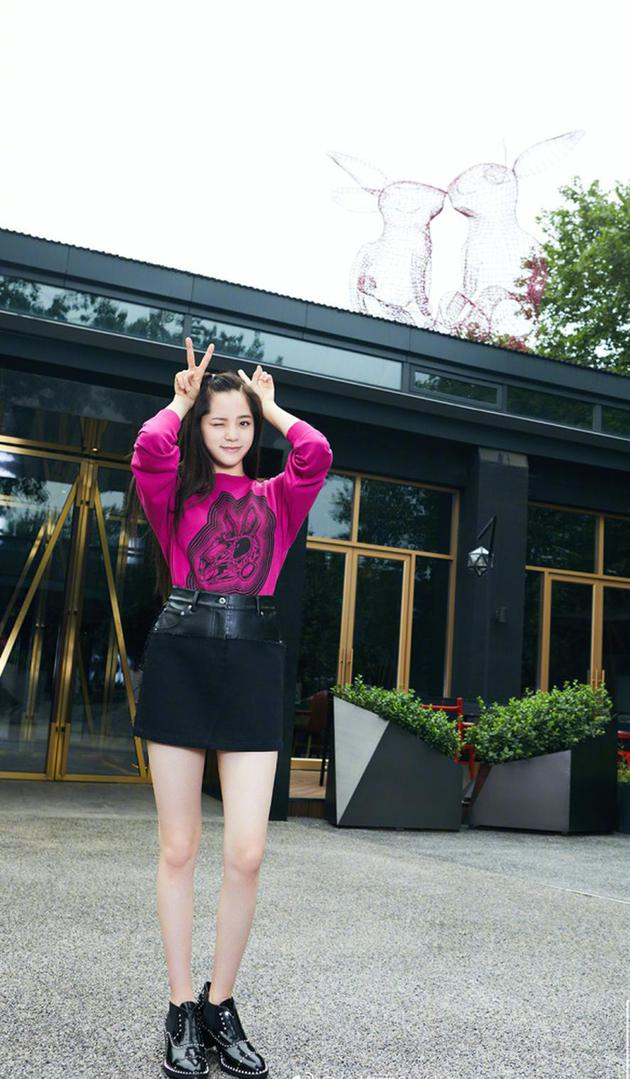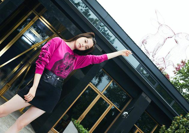 导语:近日,欧阳娜娜的一组街拍照片曝光,图中她身穿玫红色印花卫衣搭配黑色高腰短裙,大长腿尽显无疑。