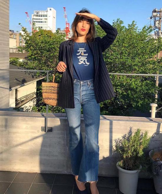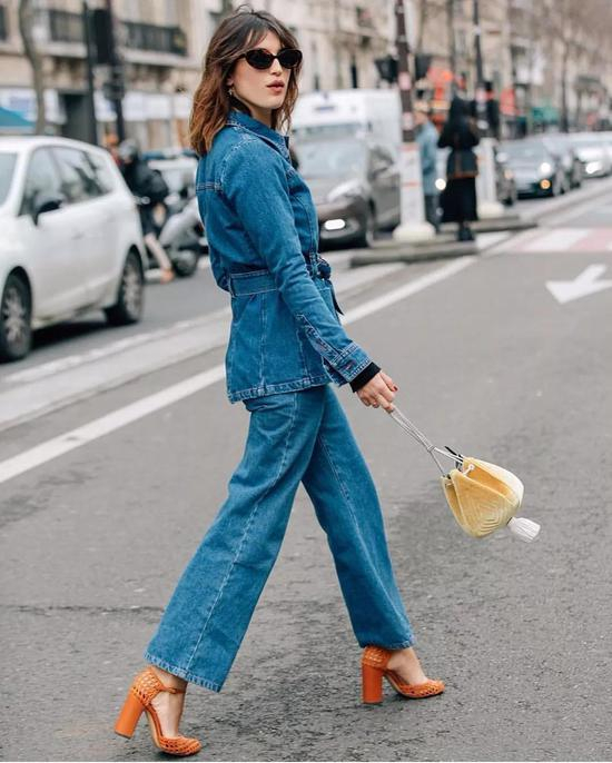 像Jeanne Damas就酷爱牛仔one piece,搭配高跟凉鞋上班穿也很适合,做最时髦的OL。