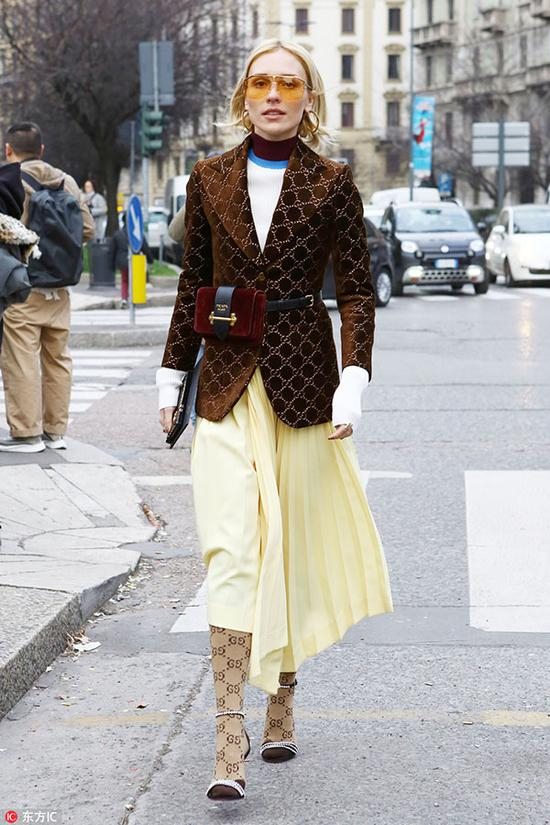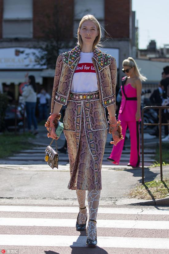 最后要给大家介绍的款式是霸气十足的豹纹连裤袜,同黑丝一样,豹纹同样被时尚圈诟病,不过对于今年兽纹风四起,豹纹连裤袜也登上了时装周街头,只不过搭配时需要做到繁简交错。