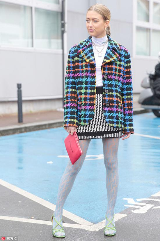 连裤袜与它的bro打底裤一直都让人傻傻分不清楚,而今年走红的撞色连裤袜更是具有更打底裤一样的实穿性,不仅可以起到吸睛的效果,还能加持运动时尚感。