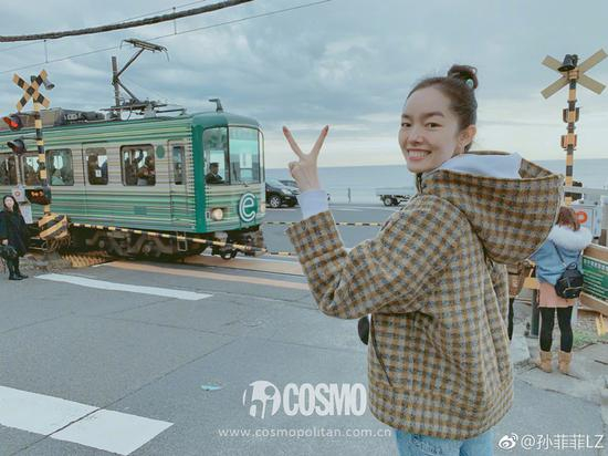 这几天在日本度假的孙菲菲一连穿了几套很灵动的look,顺便还打卡了镰仓的漫画场景,这小鹿超模走进漫画场景,也太养眼了。