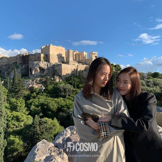 秀晶最近和姐姐也开始了度假,姐妹两依旧还是一个酷一个甜,干干净净的服装和繁杂的背景起了个对比,照片的视觉效果才强烈。