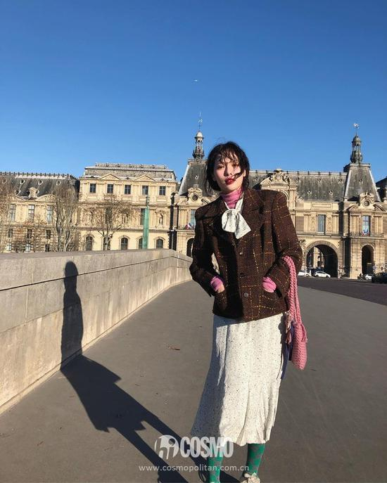 服装叠搭是让你旅拍照片的亮点,细线毛衣做内搭,粗线针织开衫在中间,再加个厚外套保准不冷,泫雅前一段时间去巴黎的时候就是这么穿。