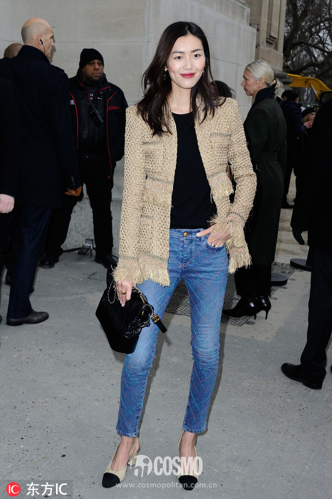 大表姐刘雯这款Chanel卡其色粗花呢外套则更加修身,夹克款的衣型穿起来很酷很飒。衣身的流苏元素也增添知性优雅气息,大表姐下身搭配一条窄脚牛仔裤,具有复古范又很有女人味。