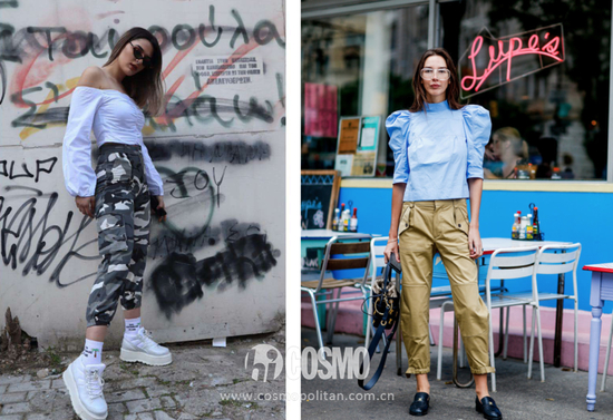 这两年嘻哈街头风大热,束口工装裤绝对是街头cool girl的必备单品。束口褶皱的设计能够弱化工装裤过于硬朗的制服感,紧与松结合平衡,有种帅气的禁欲感~