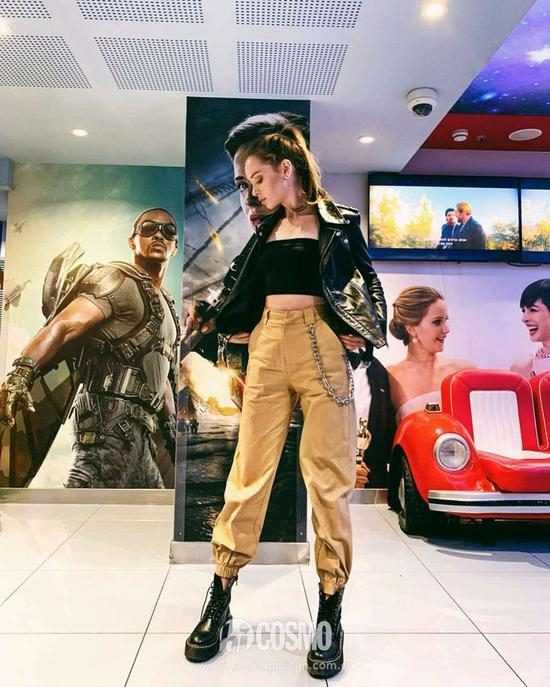 紧身上衣搭配工装裤绝对是最佳时髦搭配,帅气与性感的碰撞,既能秀出小蛮腰,又能拉长上下身比例。Alexis Ren绝对是又甜又酷的小姐姐~