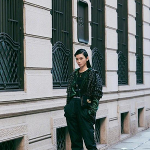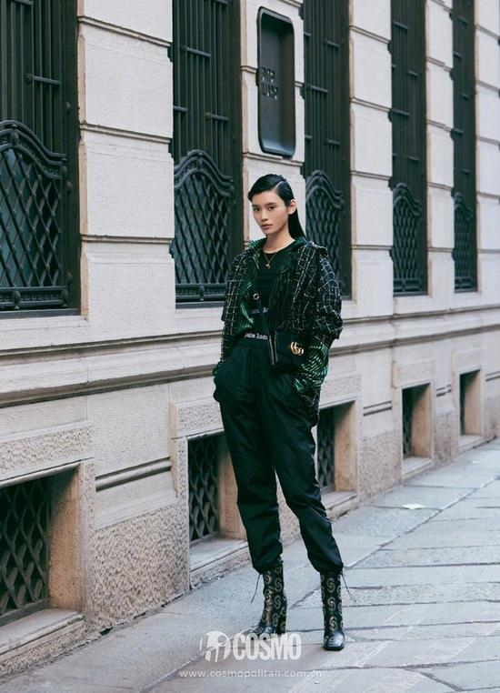 奚梦瑶近日一对牛仔裤、阔腿裤审美疲劳了,不妨跟着小编一起入手可帅气可性感的工装裤吧!身all black的造型真是又美又飒。尼龙质地的收口工装裤搭配高跟皮靴,娘man风十足,超级腿精无疑了!