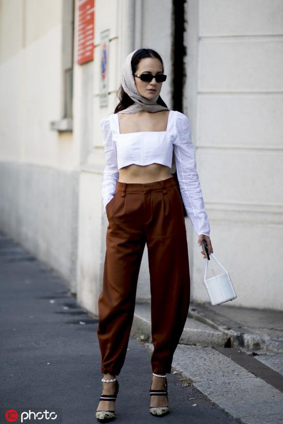 工装裤因为其中性的特质大多比较宽松,如果搭配宽松的上衣,难免会显得太过臃肿。一件croptop,更能体现洒脱随意范儿~