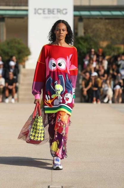 ICEBERG 本季颓废美人鱼的冒险精神在全新的“i”字千鸟格设计中发挥了作用:单排扣西装搭配窄腿裤的经典套装,百慕大短裤搭配冲浪上衣装备的两件套,以及Lil Kim提花风格针织泳装和薄纱罩衫,采用艳丽的红色、粉色和黄色,并以首饰进行点缀。经典的ICERBERG卡通卫衣层层叠搭,随性时髦。