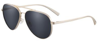 这款经典机师型镜框采用金属希腊回纹及精巧的美杜莎饰章细节耳套,备有炭黑色配啡色渐变镜片,以及金色配灰色镜片选择。