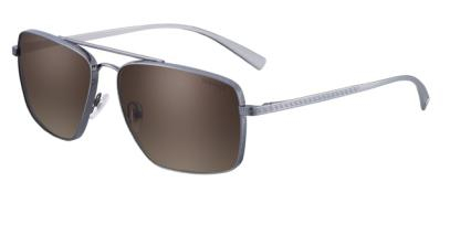时尚利落的金属镜框与夺目的外型,为方形镜片设计注入新意。眼镜配以激光雕刻的希腊回纹镜臂及双鼻梁设计,备有炭黑色配啡色渐变镜片,以及哑黑色配浅啡色反光深金色镜片选择。