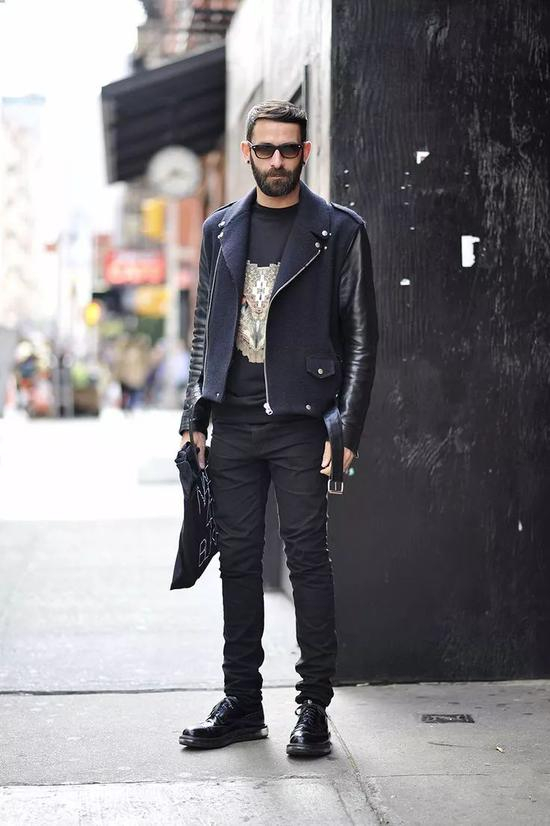 说完了皮衣的种类,如何搭配皮衣也是至关重要,毕竟这个酷炫的单品,稍不留神就有可能穿出杀马特的既视感。
