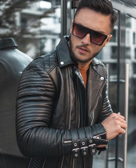 大家都知道男人穿皮夹克很酷,但因为皮夹克的穿搭对于一个人的气质非常看重,所以真正有胆量穿上皮夹克的男人其实并不多。