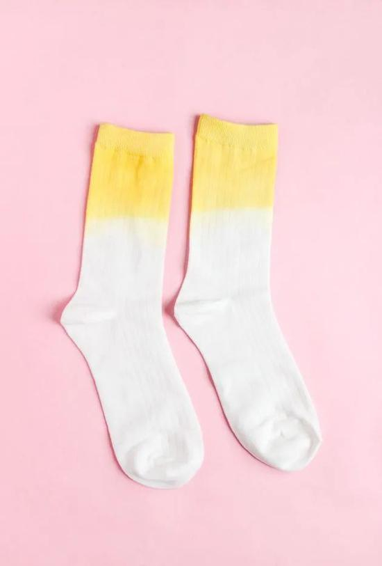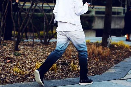 最后,如果不敢大胆尝试大面积渐变色单品,可以先从配饰着手。比如帆布鞋或单色晕染的袜子,小范围的露出就可以获得时髦感plus。