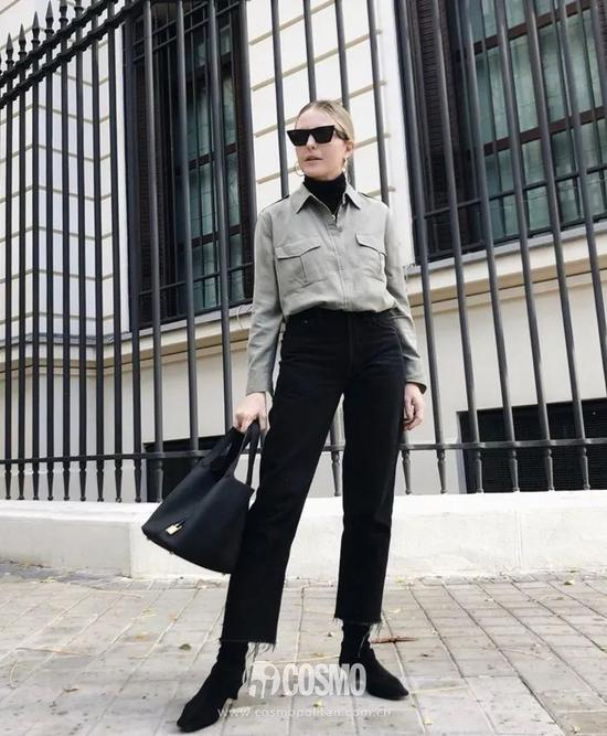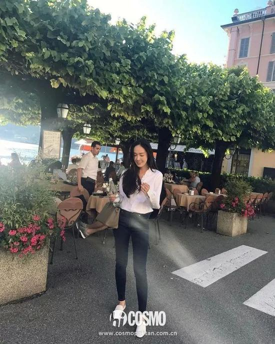 身材属于娇小卦的Jessica有时会聪明的选择25cm的小size,配上基础白衬衫和丹宁裤也蛮休闲耐看。