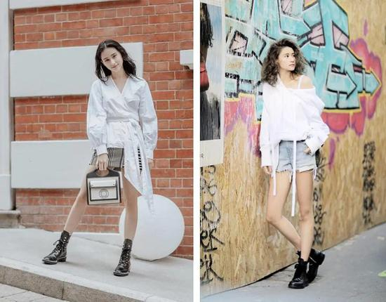162cm的王子文还踩着黑色短靴出镜《第二次也很美》,搭配外套短裤或者衬衫破洞裤,都是非常适合现在的穿法。