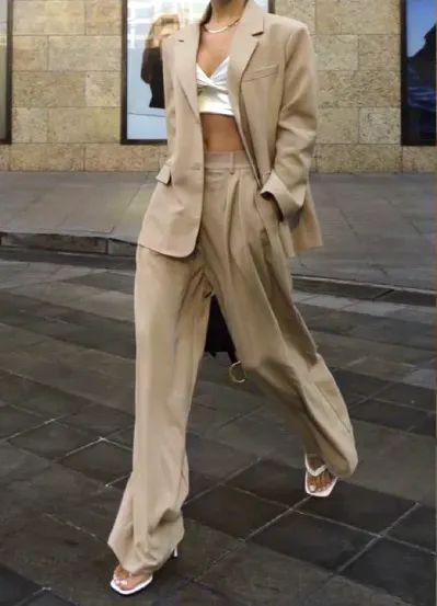 搭配技巧:廓形西装+阔腿裤