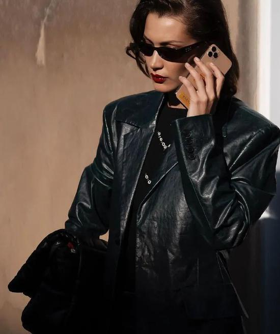 中和了皮衣的硬朗感,