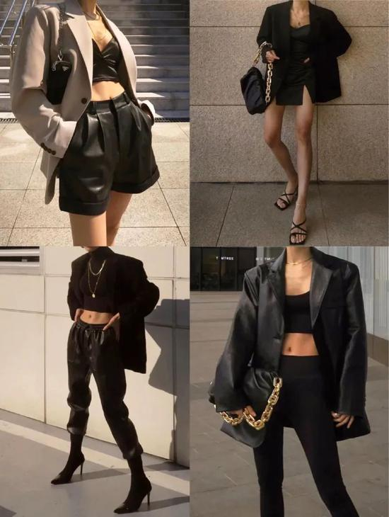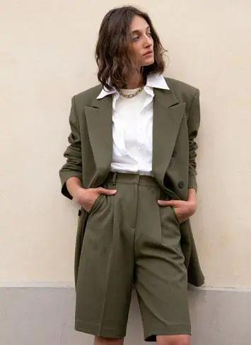 搭配技巧:廓形西装+同色系短裤(短裙)