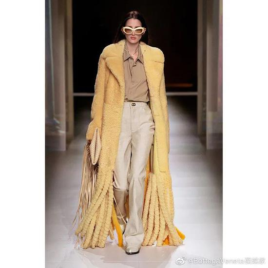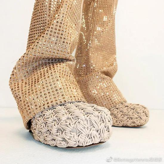 Bottega Veneta在砂岩褐上加以水晶、亮片等装饰,呈现出一种迪斯科老式华丽。