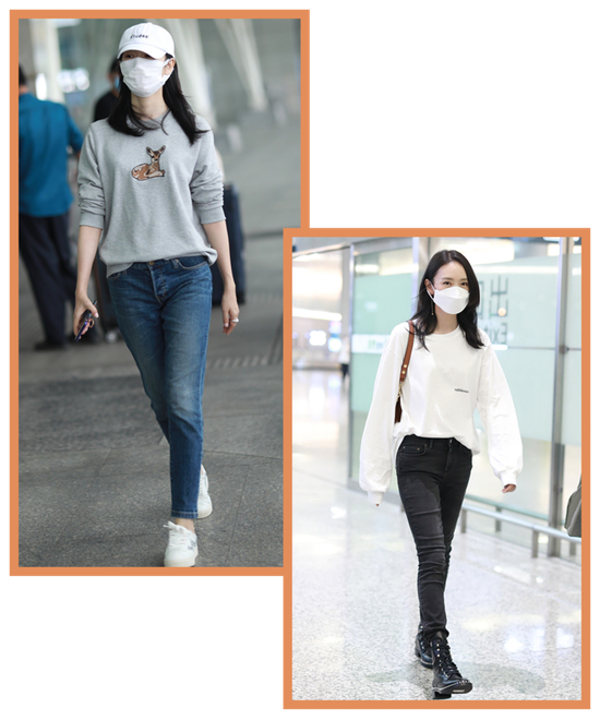 而私服中的童瑶和顾佳一样喜欢干净利落的职场打扮,最近几次机场街拍都是简单的衬衫、卫衣配仔裤,耐看极了。