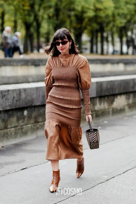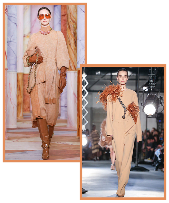 这个色彩趋势也早被秋冬秀场锁定。相比较前两年流行的浓郁焦糖色,砂岩褐仿佛混合着泥土味,有种砂砾感的质朴特色,上身总能毫不刻意地弥漫出森系风。