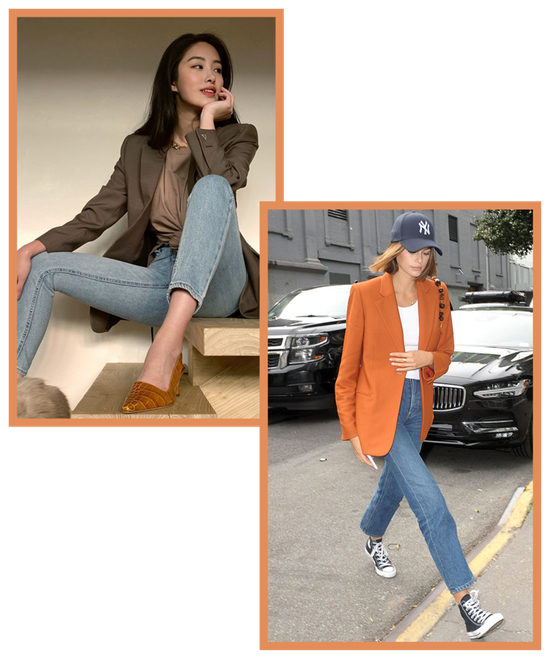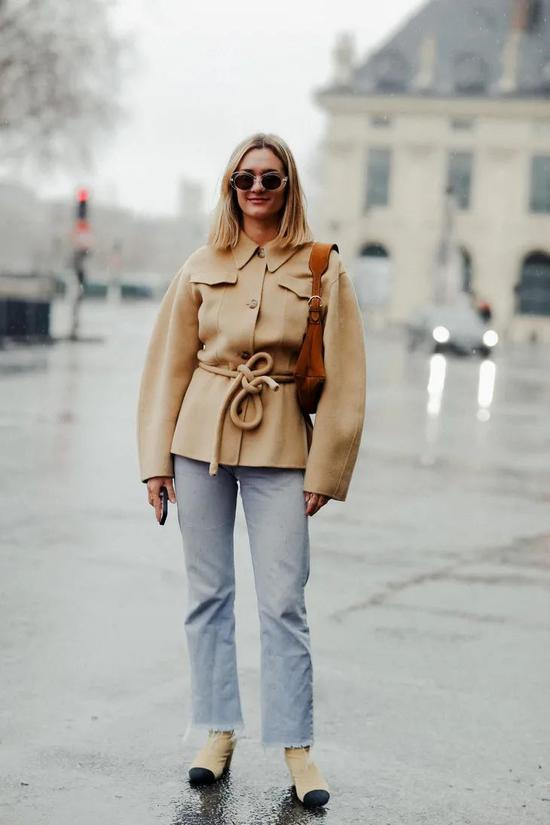 暖色调和冷色调碰撞总是不容易出错,砂岩褐和蓝色也是如此。万能牛仔又上线了,它是可以和卫衣、衬衫、西服、大衣各种单品完美适配的选择,给人慵懒的亲切感。