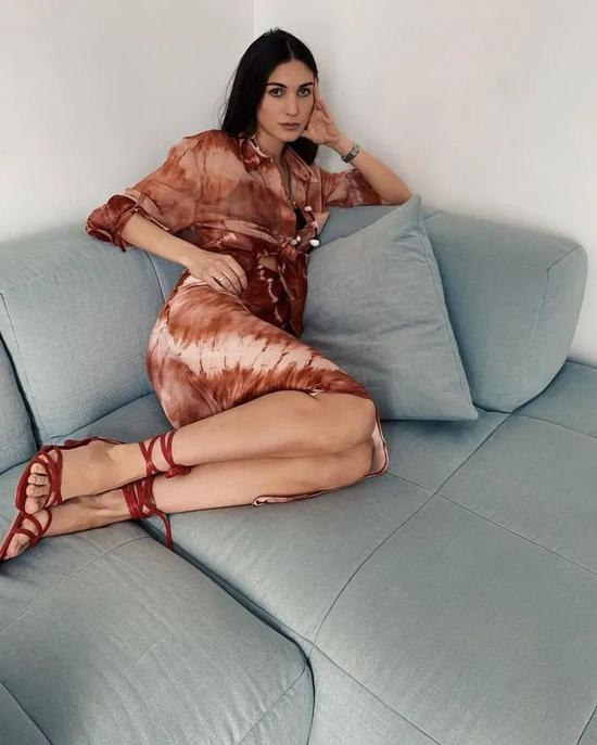 值得一提的是,Diletta Bonaiuti会用同色系格纹、蛇纹等装饰来突出造型感,是相当出挑的打扮。