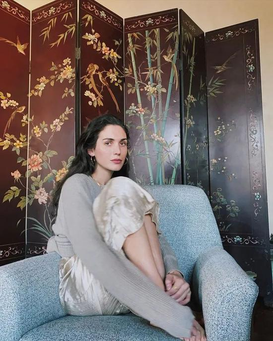 前面童瑶有用砂岩褐衬衫搭配清新绿色阔腿裤,呈现出文艺调调。这两个颜色在色板上很接近,正如叶子从夏天到秋天由绿变黄一样,是散发着迷人诗意的简单配色。