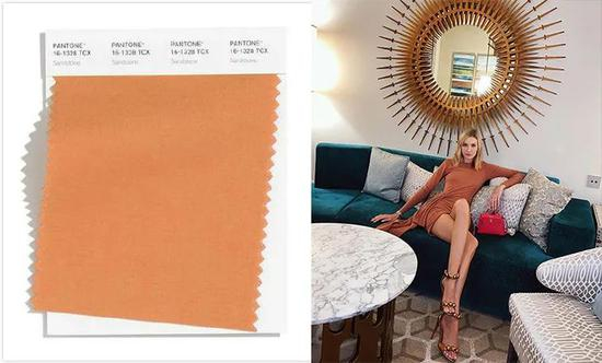这是什么颜色呢?它是潘通色卡发布的2020秋冬十大流行色盘上排名第三的砂岩褐。相比较夏天流行的牛油果绿,砂岩褐更像杂糅着夏天与秋天的情绪,带着秋季的厚重,又有收获季节生机勃勃的活力。在渐渐微凉的早秋,这抹橘色调是能让内心升腾起些许暖意的。