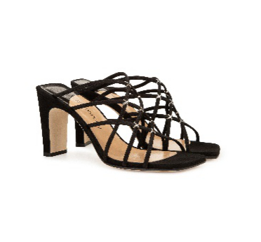 1998 – GRAZIE Sergio 黑色麂皮饰银色点缀凉鞋,跟高8.5厘米