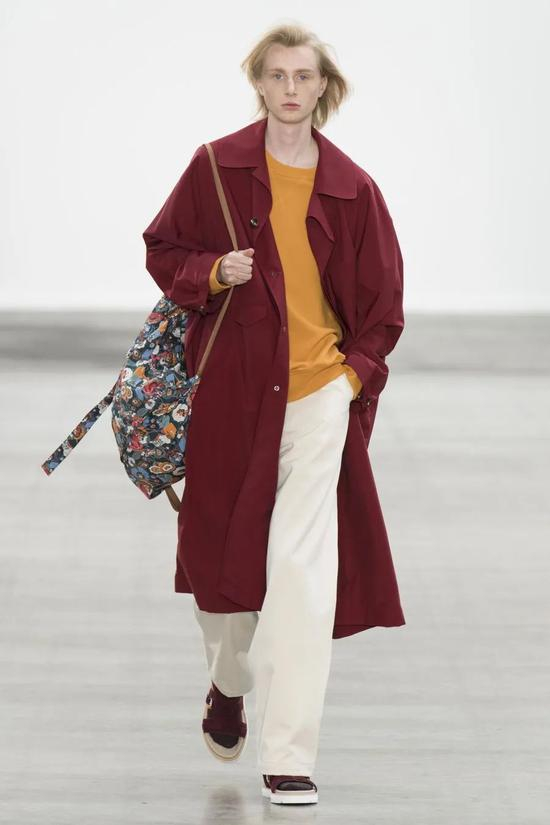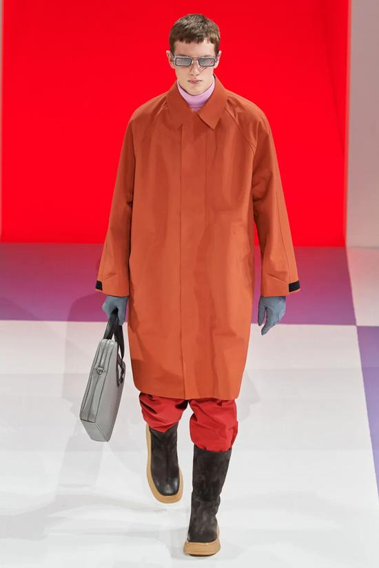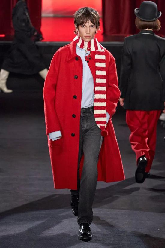 这里推荐它,是想建议大家可以在风格中把它看作是一个平常的颜色,从 2020 秋冬直至 2021 春夏系列的男装上,红色的身影出乎意料的频繁。