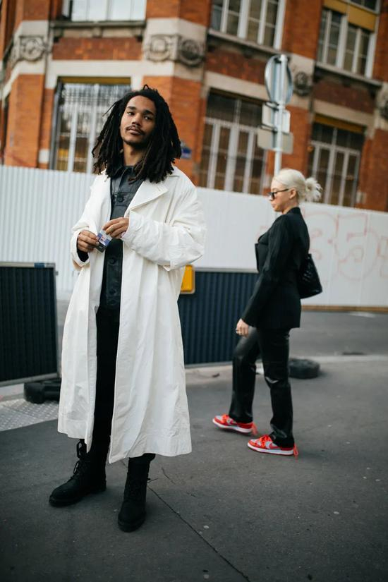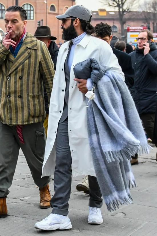 而对比普通的浅卡其风衣,白色风衣显然更要摇曳生姿,脱颖而出。