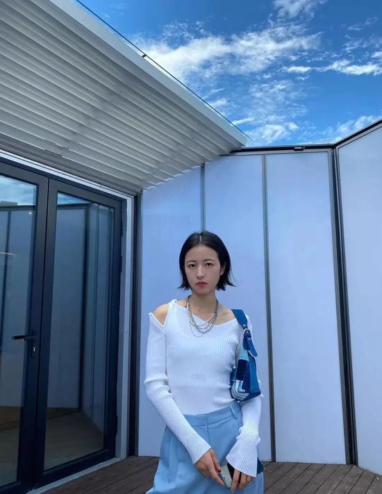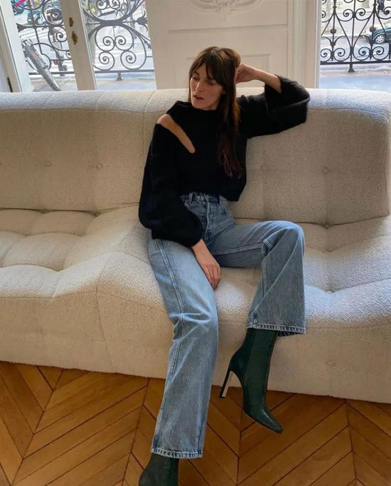 博主Leia Sfez则是Pick了相对低调的款式,肩部的开口简洁大气,和一条牛仔裤相搭,营造高级又简约的Easy Chic。