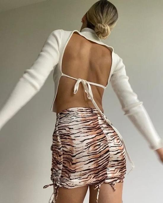 时装博主率先上身向我们示范了挖空毛衣的正确穿法——和虎纹迷你裙搭配出纯正辣妹风!