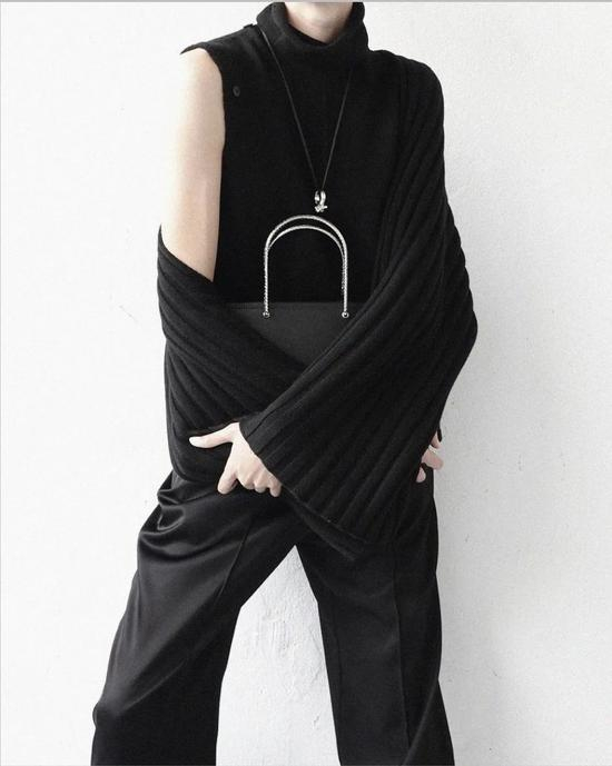 还有优雅艺术感超强的品牌REJINA PYO的一款露胸口毛衣,采用今年最Hit的坎肩➕吊带两件套的设计,品牌的细腻与质感通过挂脖的吊带体现,既适合休闲日常也能搭配高级时装hold住正式场合,性感又时髦。