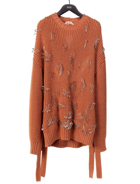 不过这还不够,N°21才真叫一个绝,将大热的别针元素和挖空设计结合,让正面和后背都很有看点,酷飒金属风和软糯毛衣的结合,碰撞出不一样的火花,专适合不走寻常路的时髦精!