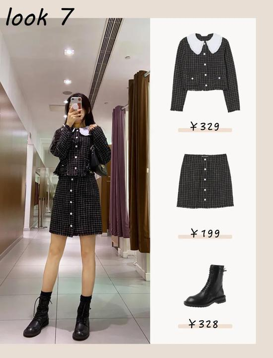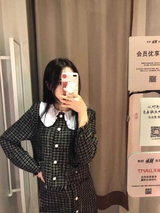 最后这套是路过H&M的时候不经意看到的,小香风每年秋冬都很火,而且甜美的宫廷风,谁穿谁少女,所以看到它的时候,就立马决定给大家试穿。