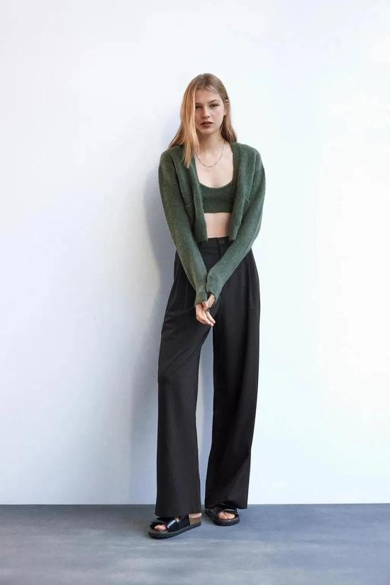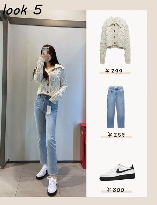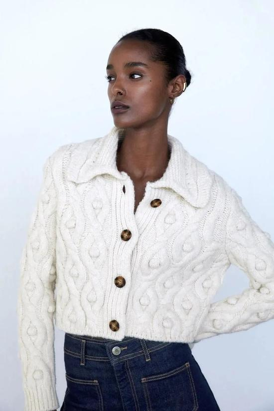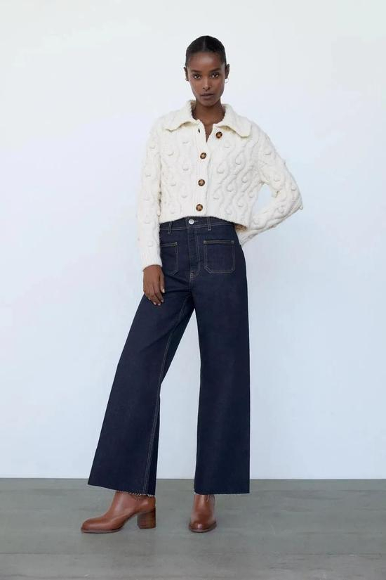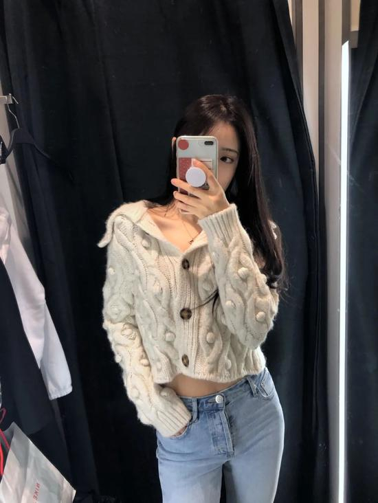 不过Zara这件设计的很讨巧,版型短小修身,极大地减少了粗针织的蓬松感,超级显瘦。