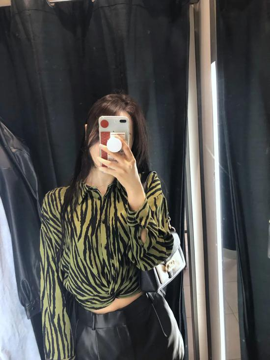 今年看过太多oversize版型的简约风衬衣,所以看到这件绿色斑马纹的时候,瞬间让人眼前一亮。