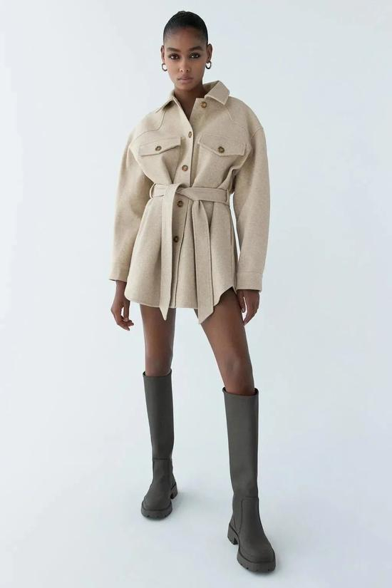 腰带可拆卸,喜欢有腰身的可以斜系起来,修身又能显腿长。